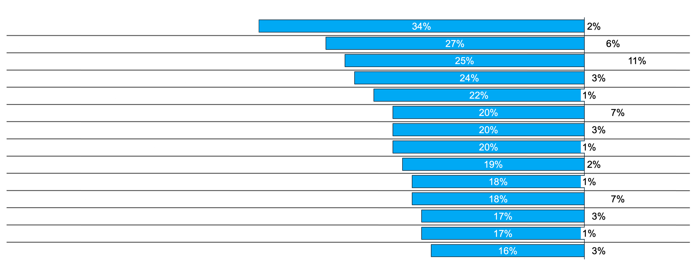 Somente as 12 categorias que foram investigadas em ambas edições da pesquisa estão sendo comparadas. Estas incluem: eletrônicos, vestuário, calçados, acessórios, itens de decoração, produtos de beleza, vitaminas/suplementos/medicamentos sem-prescrição, bebidas alcoólicas, bebidas não alcóolicas, supermercado, reforma/jardinagem, fitness e bem-estar.